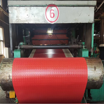 The Round Dot Rubber Flooring has an anti-slip coin surface one side and cloth impression pattern on the reverse, fabric insertion available, which is environmental protection, easy to install, clean and dry. It has great capacity of wearing resistance, aging resistance, waterproofing, anti-slipping, anti-fatigue, heavy duty, shock absorption and better resilience.